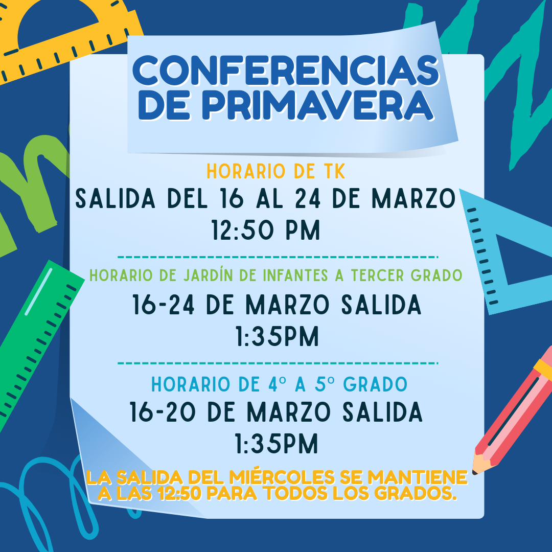 Schedules for conferences will go home soon from your teacher. Please keep an eye on papers sent home or messages sent through Aeries for signups.